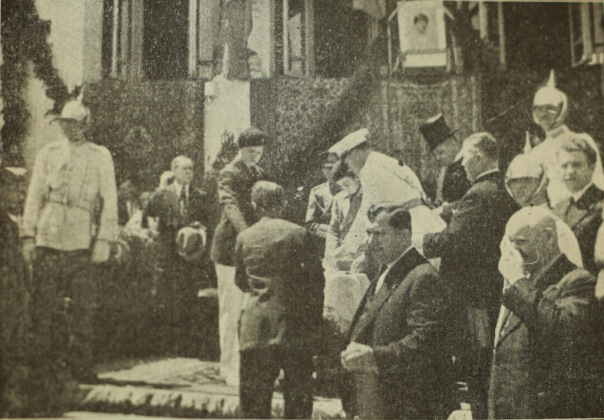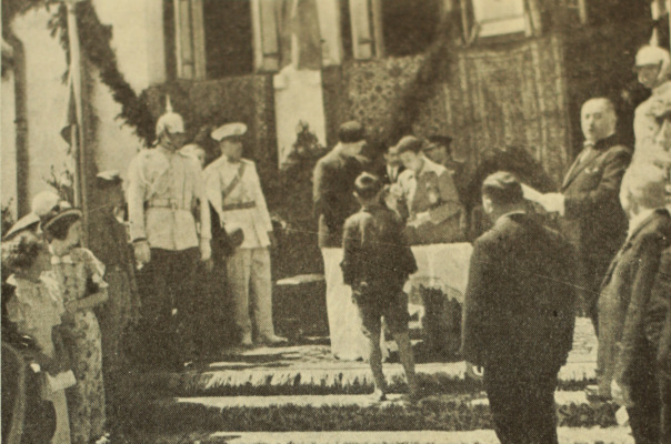„Dar iată, pe stâlpul de piatră al unei poti boiereşti, un băieţaş stă în picioare şi ţine în mână, în poziţie de drepţi, un steag în culorile naţionale, mare de două ori cât el. Marele Voievod… cere aparatul şi-l fotografiază el pe băieţaşul care l-a întâmpinat şi salutat în chip atât de original… După aceea, Măria Sa coboară din maşină şi dă mâna cu preotul şi cu învăţătorii, ba şi cu un bătrân simpatic, care împingea de zor mulţimea să-şi facă loc până la Marele Voievod”.