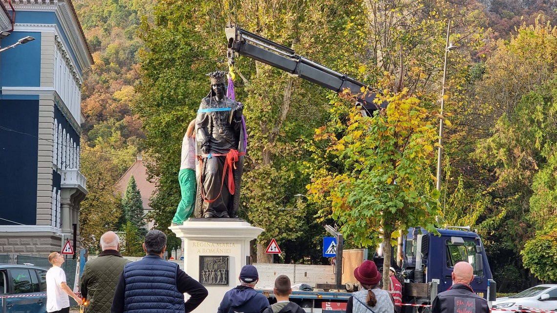 Reamintim că statuia a fost realizată de artistul plastic Ștefan Bințințan, sculptor din municipiul Alba Iulia care a câștigat concursul de soluții organizat de administrația publică locală pentru realizarea statuii reprezentând pe Regina Maria a României.