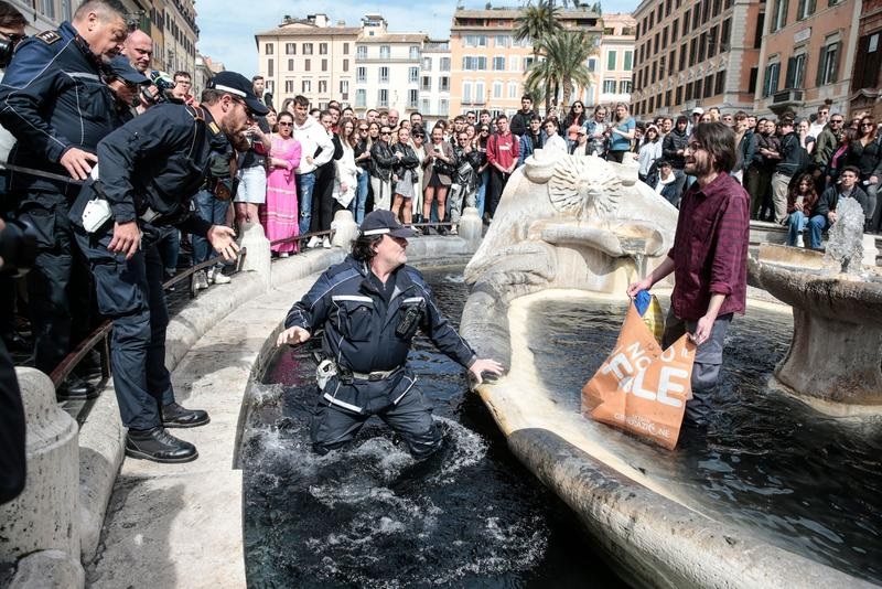 Activiştii ecologişti au înnegrit apa unei fântâni monumentale din Piazza di Spagna din Roma. Înnegrirea apei „prefigurează scenariul „sfârşitul lumii” spre care ne îndreptăm. Protestele din Italia fac parte dintr-o serie de acţiuni în întreaga Europă pentru a atrage atenţia asupra schimbărilor climatice.