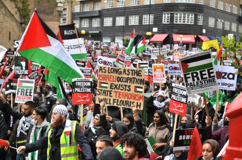 Londra. Peste 150.000 de oameni au protestat susținând cauza palestiniană. Mitinguri similare de susținere a cauzei palestinei au avut loc de-a lungul săptămânii pe tot mapamondul. Din reflex, oamenii au tendința să țină partea celui mai slab, în acest caz poporul palestinian îndelung încercat de ocupația israeliană. Oamenii cer o rezolvare pașnică a cauzei palestiniene, adică, mai precis, să fie creat un stat Palestina recunoscut oficial de marile puteri.