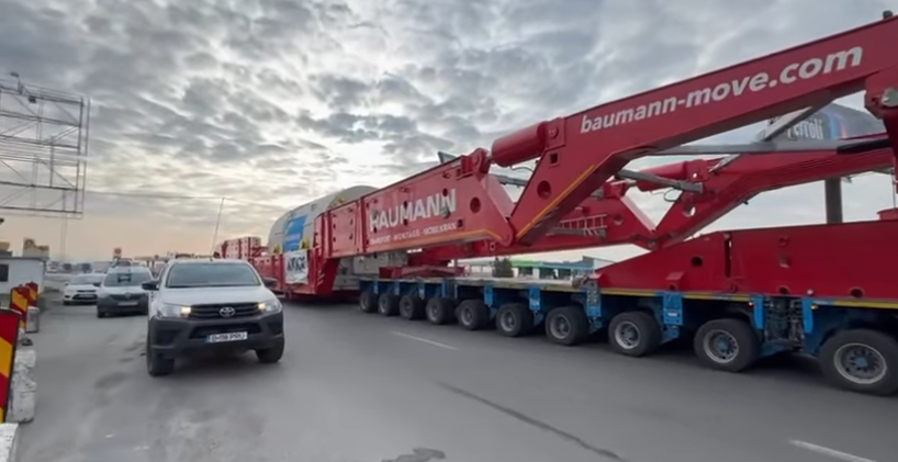 Turbina de la Mintia. Duminică a intrat în țară cel mai mare transport agabaritic care a rulat până acum pe rețeaua rutieră din România, anunță oficialii Companiei Naționale de Administrare a Infrastructurii Rutiere (CNAIR). Convoiul are o lungime totală de 128 m, lățime de 6 m, înălțime de 5,4 m și greutate 788 tone. Transportul agabaritic duce o turbină la termocentrala Mintia aflată în plin proces de retehnologizare.