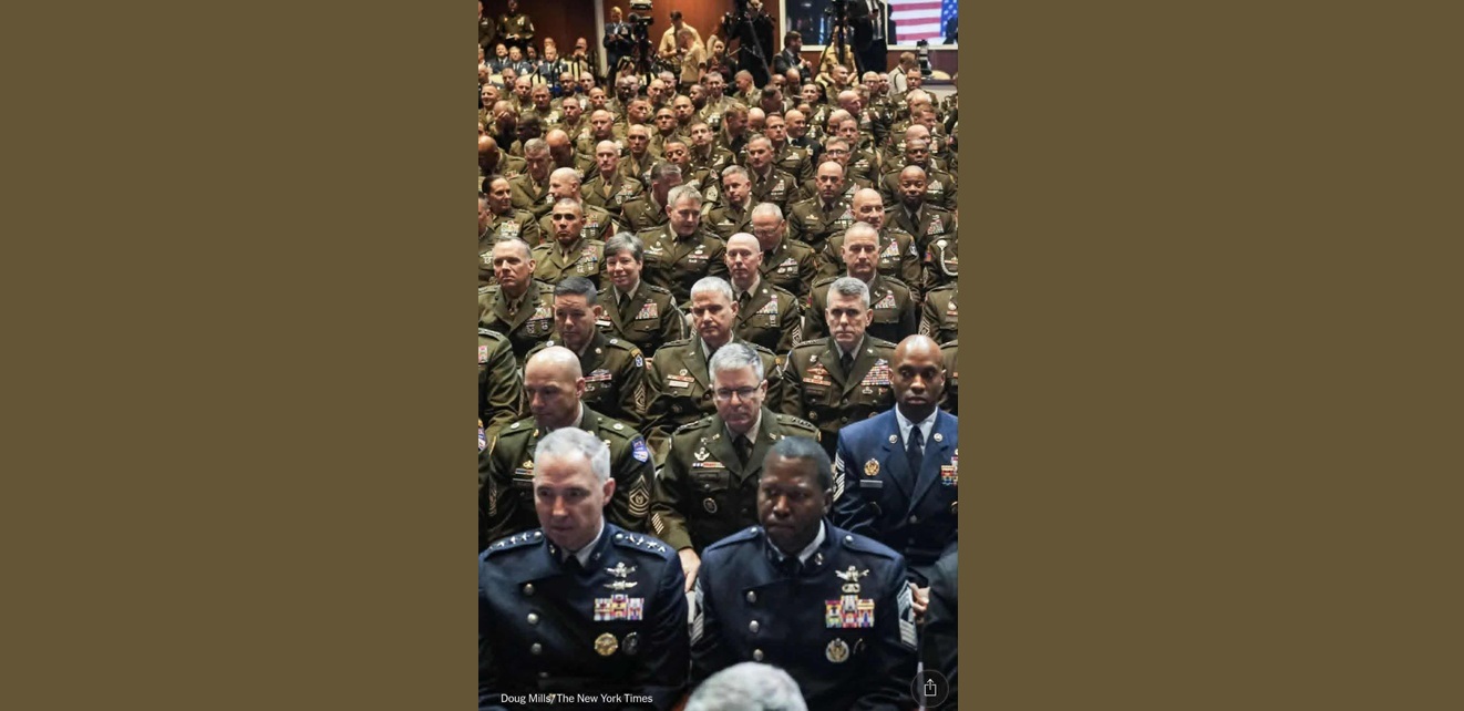 Ideea să aduni toată spuma armatei Statelor Unite la un loc, ea în sine, e cel puțin ciudată, dacă nu cumva este un exhibiționism autoritarist de-a dreptul,. Ceva important se va întâmpla au speculat mulți înainte de eveniment. Unii au vorbit despre o flotă de avioane cisternă care a fost observată traversând Atlanticul înaintea întâlnirii. Se întâmplă ceva important, au conchis observatorii. Altfel, dacă nu ai de transmis ceva epocal către propria ta armată, ce rost ar avea să ”concentrezi” circa 800 de amirali, generali, înalți ofițeri de pe tot mapamondul la Baza Quantico? Doar să se uite la tine cum vorbești pe scenă? Exact de asta! Elita armatei americane a fost convocată de președintele Donald Trump pentru o informare politică. Trump a sugerat pe parcursul discursului că dorește ca armata să răspundă amenințărilor percepute acasă, inclusiv ceea ce el consideră a fi revolte și imigrație neautorizată. Pe urmă, președintele american a încercat să se prezinte ca un pacificator în timp ce a enumerat mai multe crize globale pe care a spus că le-a rezolvat personal, inclusiv ciocnirile dintre India și Pakistan în mai. El a sugerat că merită un Premiu Nobel pentru Pace pentru acest efort. Trump a spus că încă lucrează pentru a pune capăt războiului din Ucraina, dând vina pe președintele rus Vladimir Putin pentru continuarea conflictului. De-a lungul discursului, Trump l-a criticat pe predecesorul său Joe Biden, susținând că retragerea haotică a SUA din Afganistan sub supravegherea sa este ceea ce l-a motivat pe Putin să invadeze Ucraina. Informarea politică a lui Donald Trump a fost precedată de un episod cu ecouri din politica nazistă privitoare la rasa superioară susținut de Secretarul american al Apărării, Pete Hegseth. Acesta a introdus 10 directive pentru standarde fizice și disciplinare stricte, inclusiv teste de fitness neutre de gen pentru soldații americani. Cumva, ce s-a întâmplat miercuri la Baza Quantico chiar a fost un moment important, dar nu în sensul pozitiv la care democrațiile europene se așteptau. Regimul Trump le-a transmis generalilor și amiralilor americani că epoca toleranței față de minoritățile sexuale, a libertăților individuale, a feminismului și a conceptului american ”ești liber să fii ceea ce vrei tu să fii” s-a terminat. Armata americană trebuie să devină o forță ”ariană”, rasă superioară cu ”six pack”, lovituri mortale și misogină cu femeile care nu pot învinge la număr de flotări un bărbat. Mesajul esențial a fost însă altul. Anume că administrația Trump vrea ca, la ordin, armata americană să întoarcă armele împotriva propriului popor. Dacă nici asta nu miroase a dictatură, atunci chiar și Putin ar merita un premiul Nobel pentru Pace. Iar îngrijorarea asta se citește foarte clar pe fețele militarilor prezenți în sală la Baza Quantico (foto).
