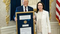Şefa opoziţiei venezuelene Maria Corina Machado a anunţat joi, în faţa sediului Capitoliului, că i-a oferit preşedintelui american Donald Trump medalia Premiului Nobel pentru Pace pe care la primit în 2025. Comitetul Nobel a precizat că manevra nu are nicio valoare, premiul este netransferabil. Chiar și așa, vorba lui Firicel, lingușeala groasă din spatele donației senioritei Machado și tâmpa încântare de pe fața beneficiarului ucid în față orice idee de prestigiu legat de moment. Dna Machado își dă dimensiunea de mare precupeață politică, gata să pupe ghiulul unui președinte ca Trump pentru putere. Dar, dacă a crezut că darul l-ar putea îndemna pe președinte să ofere o susținere mai clară, se pare că ar putea fi lăsată să aștepte, cel puțin deocamdată. În ciuda tonului optimist al lui Machado, rămâne neclar dacă a obținut ceva, dincolo de o ședință foto și o pungă cadou oficială imprimată cu semnătura lui Trump. Dna Machado a declarat totuși că ”atunci când va veni momentul” va candida la președinția Venezuelei. Deocamdată însă, Donald Trump preferă să mențină dictatura în Venezuela. Iar faptul că el, chiar și-așa, s-a lipit, aproape libidinos, de un premiu Nobel care nu-i aparține e un gest de mare cocalar.”The Great Moron”, cum ar spune americanii. Poate cel mai mare la moment pe glob.