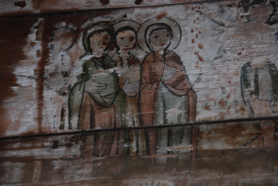 Pictura încă se mai păstrează pe pereţii ei din lemn, însă starea sa precară nu permite prea multe precizări de natură stilistică. Totuşi, o inscripţie de pe o icoană a Maicii Domnului Hodighitria dezvăluie atât vechimea, cât şi unul dintre autori: “Ion Zugrav din Ardeu, să le fie pomană sufletelor lor, 1731”.