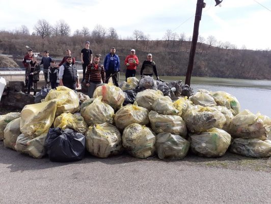 Saci întregi cu gunoaie, adunate de pe malul lacului Cinciș
