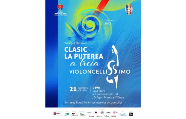 Primăria Municipiului Deva și Centrul Cultural „Drăgan Muntean” Deva vă invită în data de 21 octombrie 2023, începând cu ora 19:00, în Sala Mare a Centrului Cultural „Drăgan Muntean”, la ediția a V-a a turneului ,,Clasic la puterea a treia, Violoncellissimo”, susținut de Marin Cazacu și ansamblul cameral Violoncellissimo.