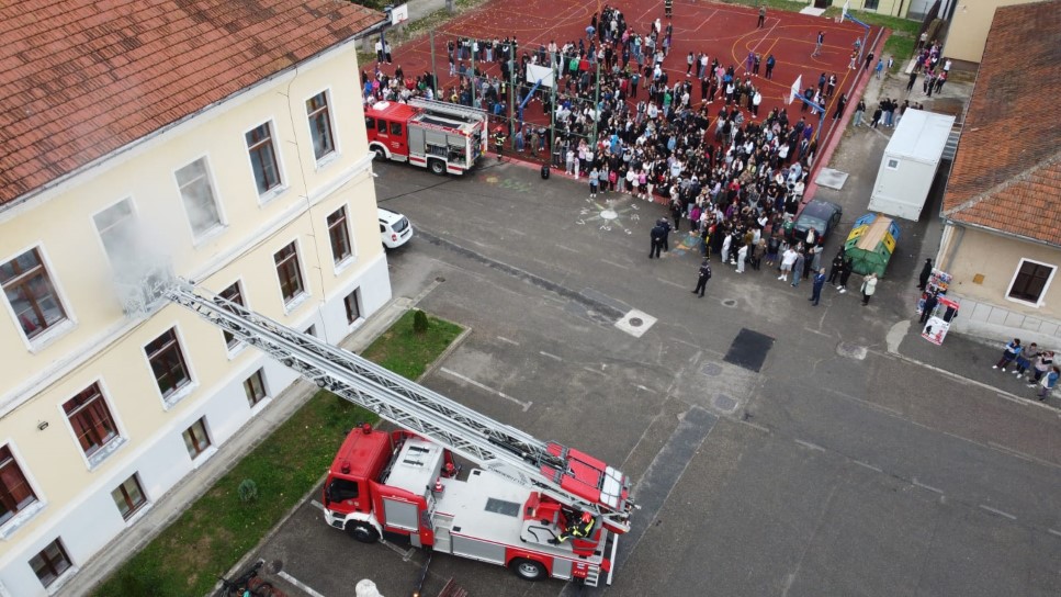Peste 2.500 de elevi, cadre didactice și personal auxiliar s-au evacuat, astăzi, pe timpul unor exerciții de alarmare – evacuare organizate de către pompierii hunedoreni la Colegiul Național „Regina Maria” Deva, Colegiul Național „Aurel Vlaicu” Orăștie, Colegiul Național de Informatică „Carmen Sylva” Petroșani și Școala Gimnazială nr. 6 din cadrul Liceului Tehnologic „Matei Corvin” Hunedoara.