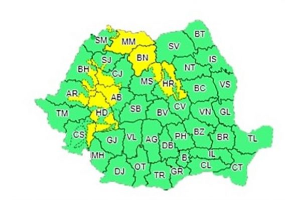 Săptămâna începe cu atenționare meteorologică de cod GALBEN