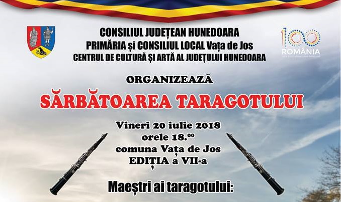 Maraton artistic la Vața de Jos. Taragotiști renumiți au întâlnire, mâine, la Vața de Jos acolo unde are loc cea de-a VII-a ediție a festivalului “Sărbătoarea taragotului”. Comuna hunedoreană se mândrește cu Tezaurul Uman Viu, Pera Bulz, renumit taragotist. Festivalul se va întinde pe patru ore.