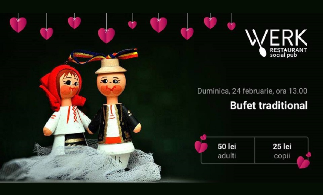 Pentru că „Dragostea trece prin stomac”, de Dragobete te așteptam cu un Bufet tradițional, marca chef Zamfira Mihai și muzică de petrecere cu Taraful Mariana Risipitu.