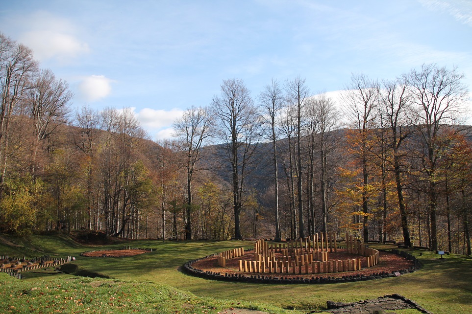 Învelită în lumina blândă a toamnei, Sarmizegetusa Regia străluceşte în nuanţele toamnei care o prind de minune. Deasupra, cerul azuriu îşi odihneşte norii printre ramurile fagilor drepţi şi uriaşi. Cum gerul nopţii a scuturat frunzele aurii şi roşcate, printre copaci, templele se zăresc de departe, iar oamenii par nişte pitici care se mişcă încetuţ prin incinta sacră.