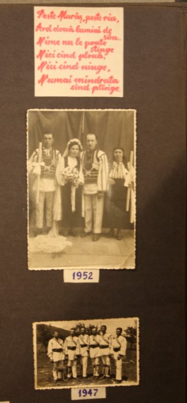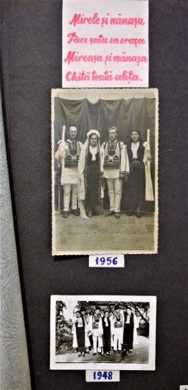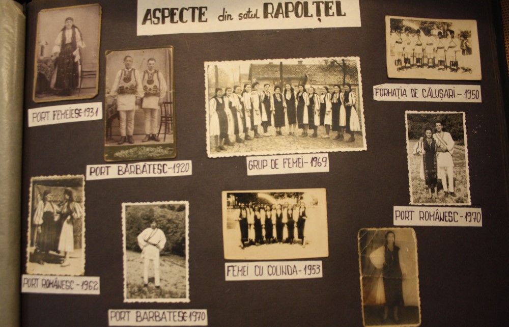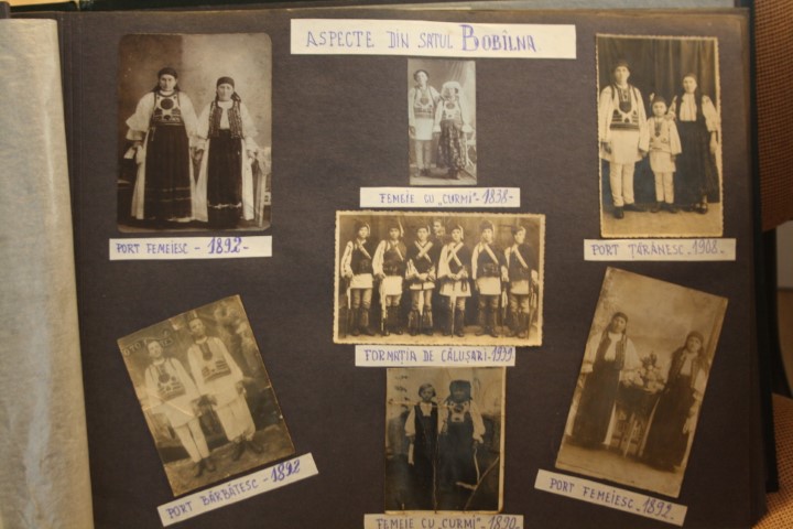 La fel de importante precum chipurile din istoria locurilor, sunt bucăţile de pânză decupate din vechile veşminte ţărăneşti şi aplicate pe paginile albumului. „Mă bucur mult că am descoperit acest album în care se poate vedea frumuseţea portului din această zonă. Avem costume populare vechi prezentate, formaţii de dansuri, cete de căluşari, găsim foarte multe motive naţionale folosite pe costume, pe ţesăturile din gospodărie. Se observă motive realizate pentru cămeşile bărbăteşti, dar şi pe veşmintele femeilor”, adaugă managerul instituţiei.