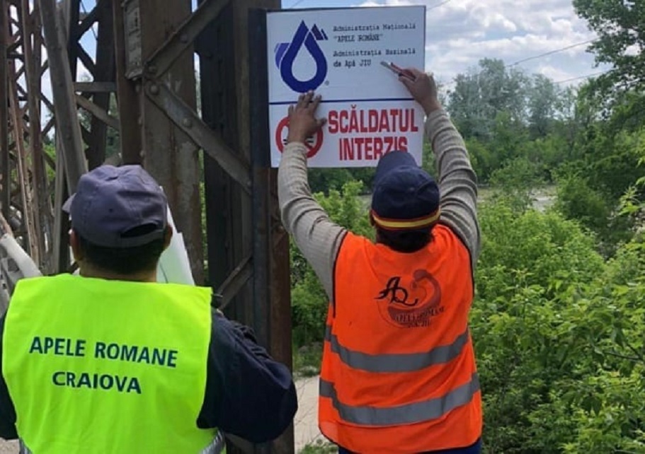 „Având în vedere creşterea temperaturilor şi odată cu aceasta tentaţia cetăţenilor de a se scălda, Administraţia Bazinală de Apă Jiu Craiova anunţă că este interzisă îmbăierea în apele curgătoare, acestea neîndeplinind condiţiile pentru a fi folosite în acest scop. Administraţia Bazinală de Apă Jiu a luat de mult timp măsuri în privinţa atenţionării înotului în râul al cărui nume-l poartă instituţia. Pentru a conştientiza populaţia de riscul pe care şi-l asumă dacă se scladă în apele Jiului – expunere la îmbolnăvire şi înnec – “A.B.A «Jiu» Craiova a amplasat pe malul râului Jiu plăcuţe cu «Scăldatul interzis»”, arată ABA Jiu.