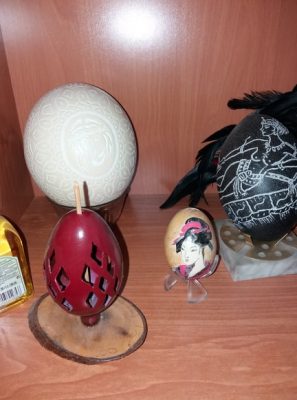 Tot în această perioadă, la sediul muzeului, vor fi expuse ouă încondeiate și gravate realizate de Silvia Dușan și Corina Bereș.