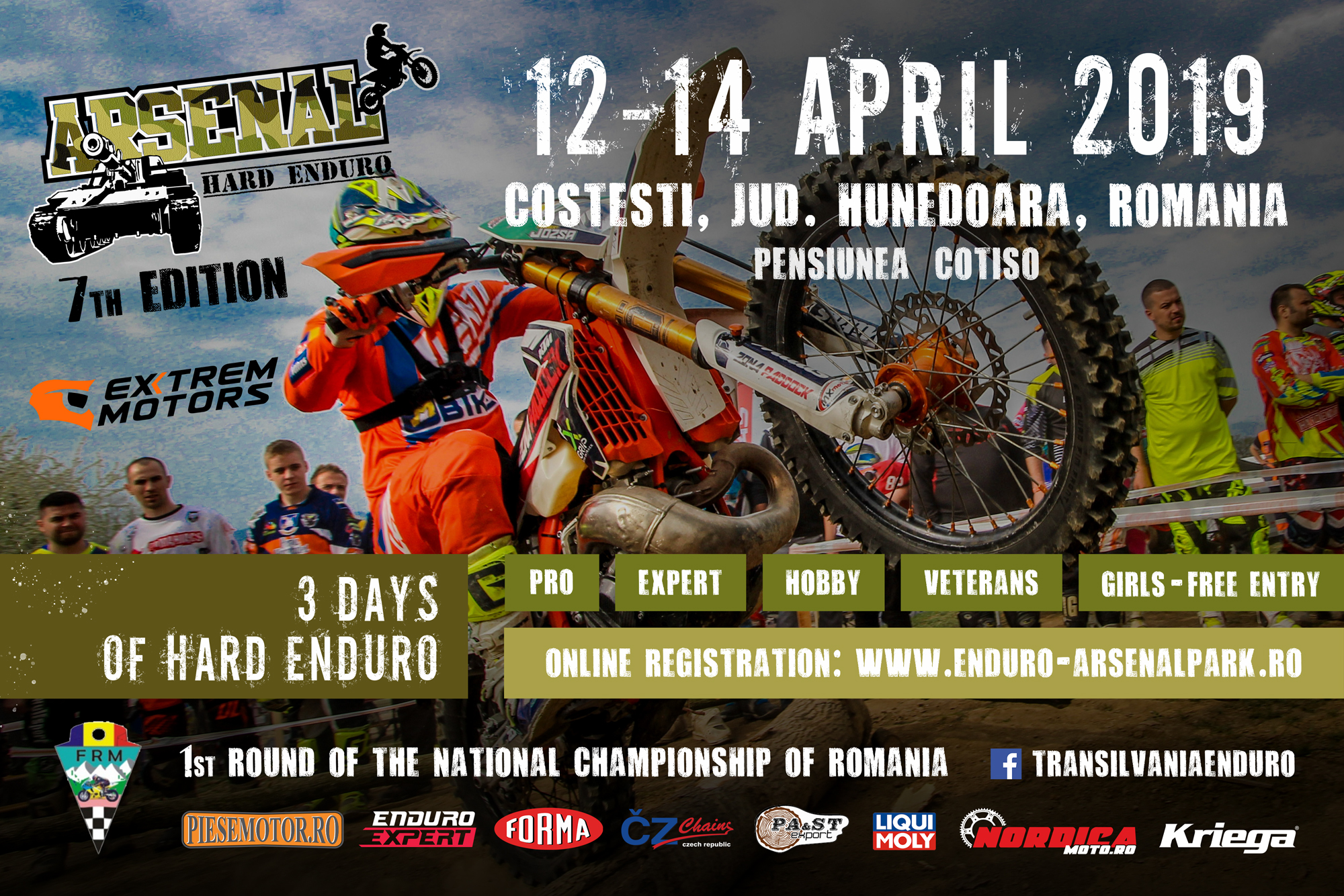 Hard Enduro Arsenal este prima etapa din cadrul Campionatului Național de Hard Enduro al României pentru anul 2019, deschisă atât concurenților români cât și celor de altă naționalitate. Startul se va da de la Pensiunea Cotiso, din localitatea Costești, începând de vineri, 12 aprilie, ora 9:00 și va continua în zilele de sâmbătă și duminică.