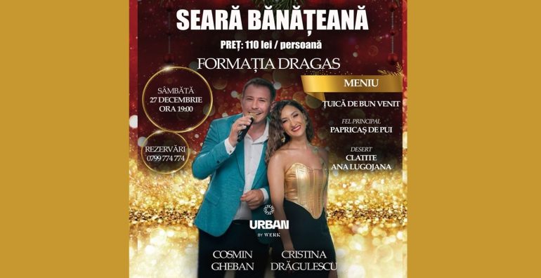 Hunedoara se pregătește pentru o seară cu parfum de tradiție, muzică live și bucate alese. Sâmbătă, 27 decembrie, de la ora 19:00, restaurantul Urban by Werk găzduiește o Seară bănățeană specială, un eveniment dedicat celor care iubesc atmosfera autentică, distracția și gusturile românești adevărate.