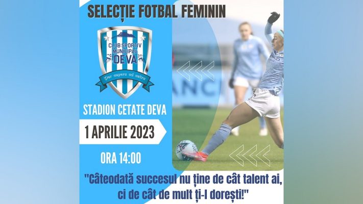 ACTUALITATEȘTIRI INFO HD SELECȚIE PENTRU FOTBAL FEMININ LA DEVA 16 martie 2023 Petru Meszaros Selecția va avea loc în data de 1 aprilie 2023, la stadionul „Cetate”