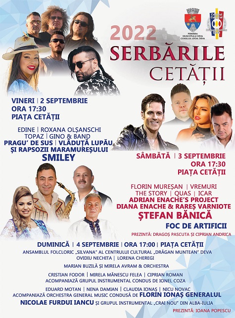 ACTUALITATEȘTIRI INFO HD „SERBĂRILE CETĂȚII 2022” – TREI ZILE DE SPECTACOL LA DEVA! 30 august 2022 Petru Meszaros Muzică pe toate gusturile și din toate genurile