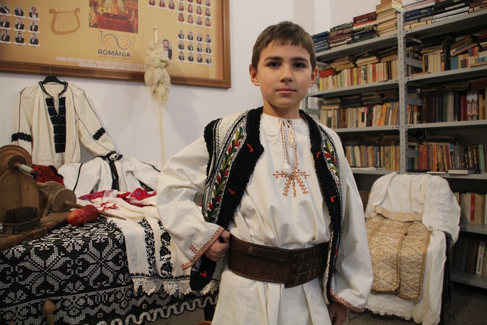 Printre femei, un băiat și-a găsit și el de lucru. Ionuţ Chiriacescu are opt ani și îi place mult arta populară: „Port un costum din satul lui mamii, are un şerpar care este foarte vechi, de la străbunicul, chiar scrie pe el anul: 1949. Eu vin la şezătoare pentru că îmi place şi mie să cos, să fac modele.”