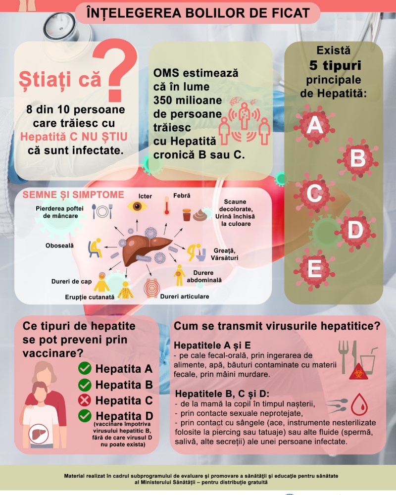Ziua Mondială de Luptă împotriva Hepatitei, marcată în fiecare an pe 28 iulie, se desfășoară anul acesta sub sloganul „O singură viață, un singur ficat!”, fiind un prilej de a evidenția necesitatea accelerarii eforturilor de eliminare a hepatitei virale și importanța prevenirii, testării și tratamentului.