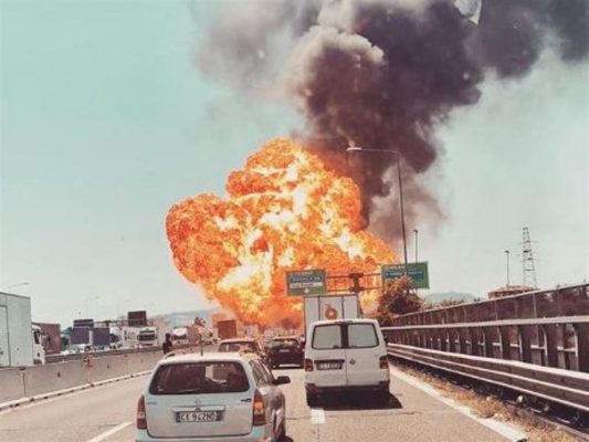 Două persoane au murit, iar alţi peste 80 de oameni au fost răniţi, luni, pe o şosea din apropierea aeroportului din Bologna, după ce o camionetă care transporta alte maşini s-a ciocnit cu o autocisternă ce transporta gaz petrolier lichefiat, declanşând astfel o explozie şi un incendiu de proporţii. Accidentul a cauzat prăbuşirea parţială a unei secţiuni suspendate a autostrăzii, iar mai multe maşini care se aflau sub această porţiune au luat foc şi apoi explodat.