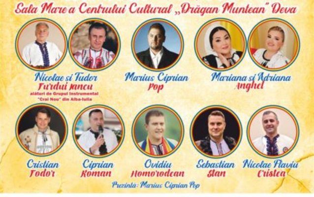 Primăria Municipiului Deva și Centrul Cultural „Drăgan Muntean” Deva vă invită marți, 30 noiembrie 2021, ora 18:00, în sala mare a Centrului Cultural „Drăgan Muntean” la spectacolul folcloric „Noi suntem români!”, dedicat Zilei Naționale a României.