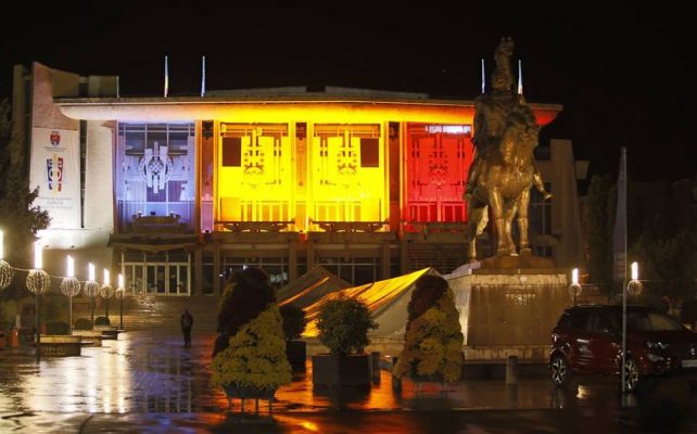 Spectaculos! Clădirea Centrului Cultural „Drăgan Muntean”, iluminată în culorile Tricolorului