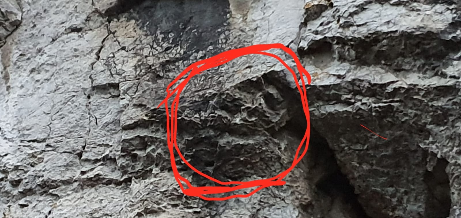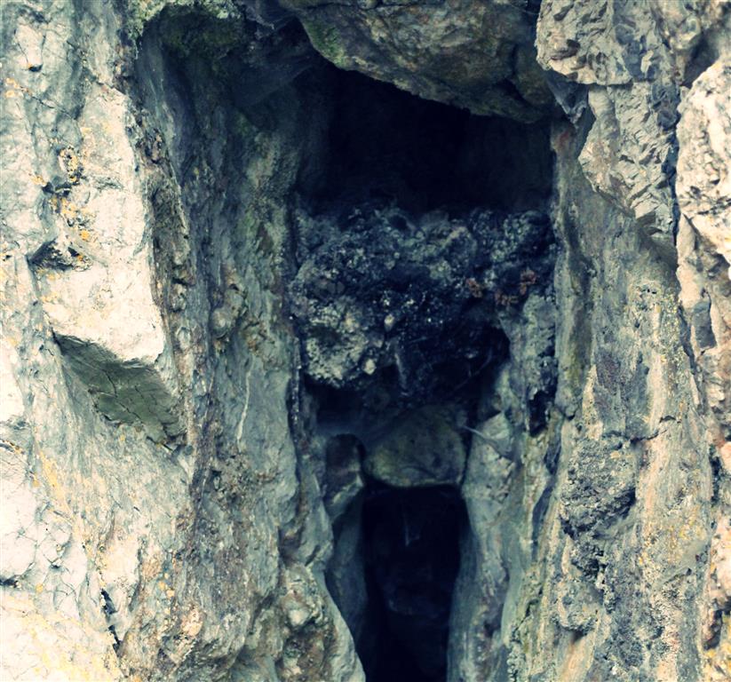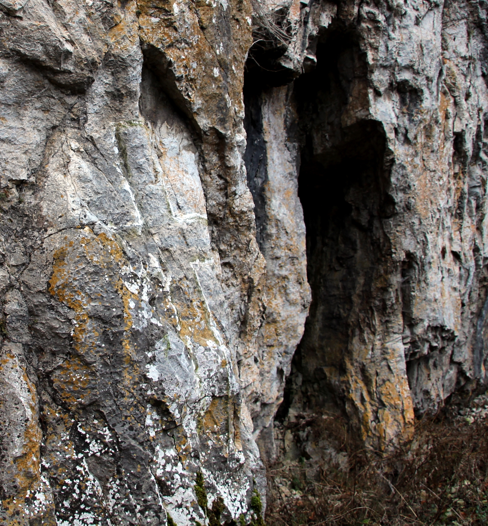 Arată cu mâna către stâncă: „Jos era o intrare pe care oamenii au astupat-o, alături era o altă fereastră, dincolo e intrarea mare, apoi este fereastra mare de sus, care se vede de departe. Aici în stâncă se vede perfect intrarea şi, de-a lungul timpului, localnicii au aruncat pietre şi efectiv au astupat gura.