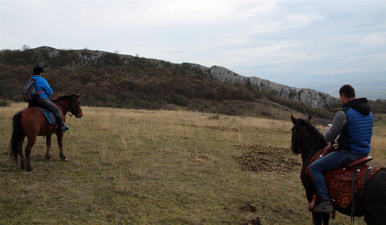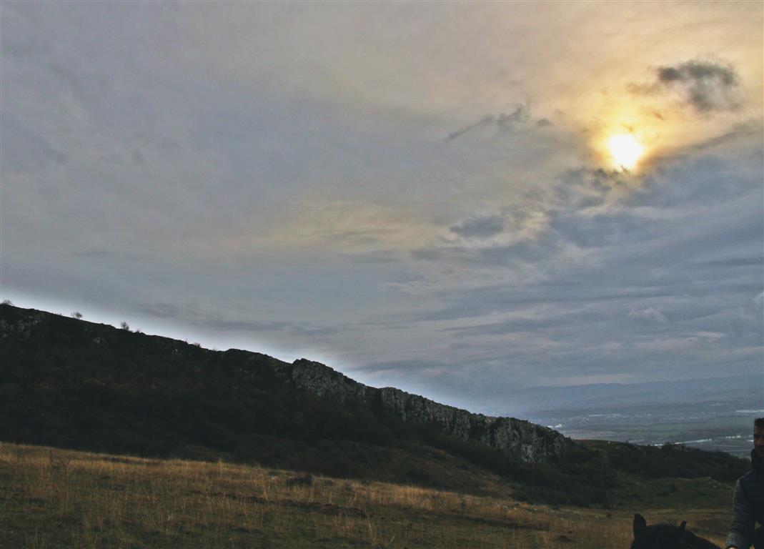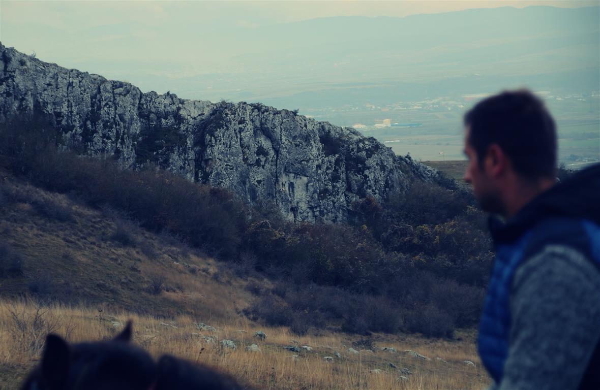 Traseul până la „Fereastra dracului” te ţine în şa cam jumătate de oră. Odată ajuns pe culme, observi în roca dealului profilul alb al ferestrei. Suntem în locul misterios dintre hotare.