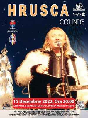 Primăria Municipiului Deva și Centrul Cultural „Drăgan Muntean” Deva vă invită în data de 15 decembrie 2022, de la ora 20:00, la un super-concert de colinde cu Ștefan Hrușcă.