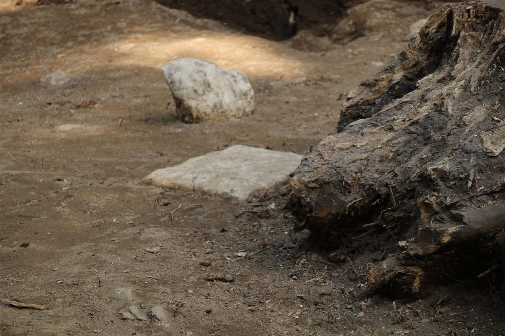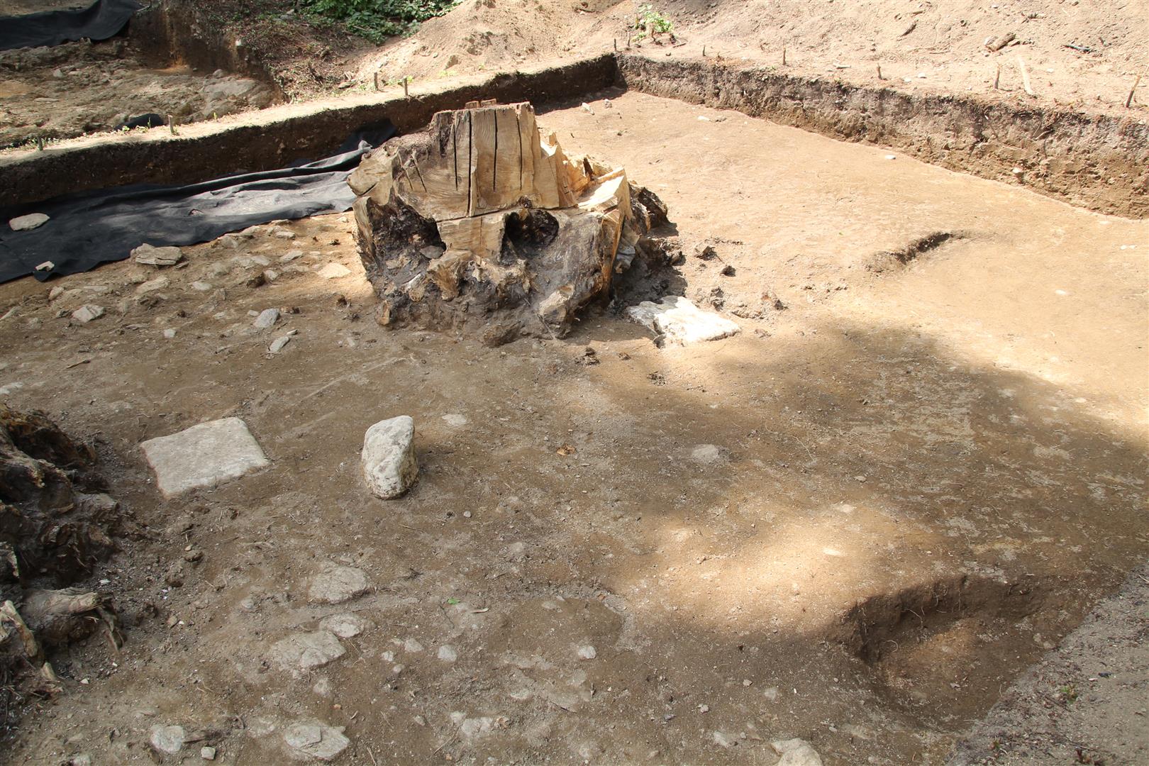 La suprafaţă, apar două pătrate de piatră – „De unul de-abia am putut da, vedeţi cât de aproape e rădăcina, am tot cioplit în ea. Credem că o altă piatră se află unde în rădăcina de alături. Va trebui să aşteptăm să se mai usuce lemnul. Tebuie recuperate cu atenţie”, explică spune prof. dr. Gelu Florea, cel care conduce echipa de pe sit.