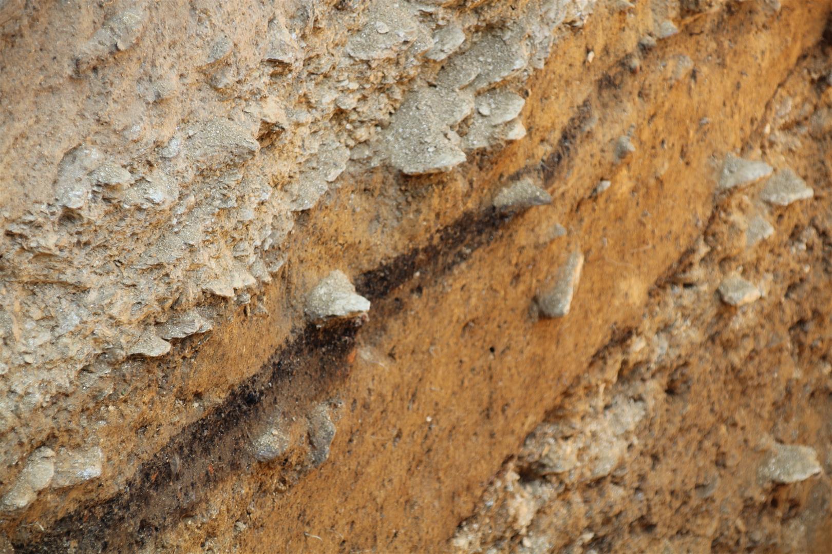 În altă parte, e o adevărată oglindă a timpului: „Pe secţiune, am continuat săpăturile de anii trecuţi – ceea ce se vede în această săpătură este de fapt structura Terasei IX. Se vede foarte clar că ea a fost la un moment dat ocupată şi folosită de către daci într-o primă etapă, după care au supraînălţat-o. Se văd straturile succesive de pământ aşezat. Aici totul este antropogen, nimic nu este natural, totul e aşezat de către daci pentru a asigura stabilitatea terasei. Au ridicat nivele succesive de pământ, piatră, lut pentru a supraînălţa nivelul de călcare pe care urma să se construiască un edificiu. Se văd şi două urme de arsuri, urme de la nişte construcţii care au ars”, explică Gelu Florea.