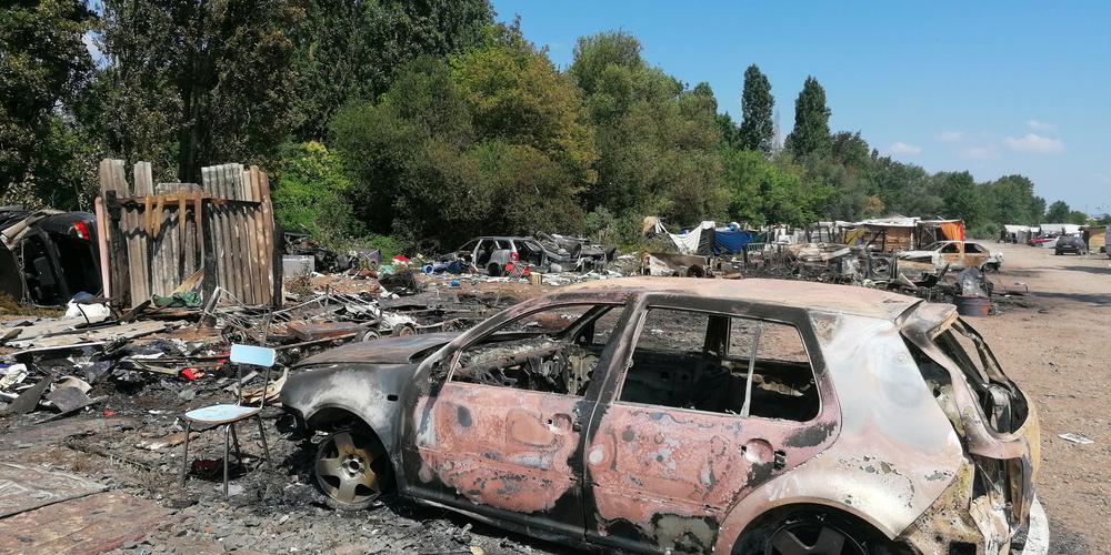 Tabăra improvizată a unor români şi bulgari într-un district aflat în apropiere de oraşul Bordeaux a fost incendiată de două ori în decurs de 24 de ore.