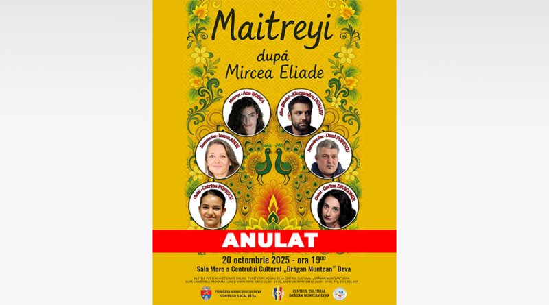 Read MoreDin motive independente de voința noastră, reprezentația spectacolului „Maitreyi”, programat pentru data de 20 octombrie 2025, ora 19:00, se anulează.