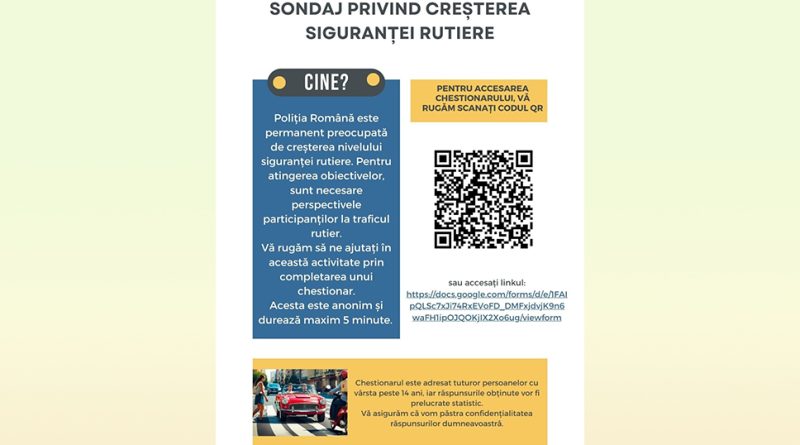 Inspectoratul de Poliție Județean Hunedoara, în cadrul demersurilor permanente de îmbunătățire a siguranței rutiere, invită cetățenii să participe la un