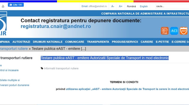 Read MoreCNAIR lansează aplicația informatica “eAST – emitere Autorizații Speciale de Transport la cerere în mod electronic”, destinată obținerii Autorizațiilor Speciale