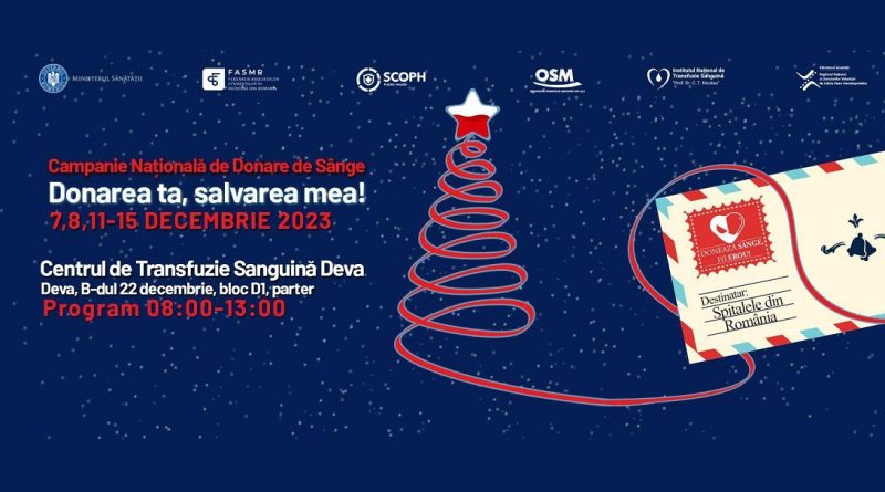 Read MoreEchipa „Donează sânge, fii erou!” – Centrul de Transfuzie Deva organizează în perioada 7,8,11-15 Decembrie o campanie de donare de sânge la