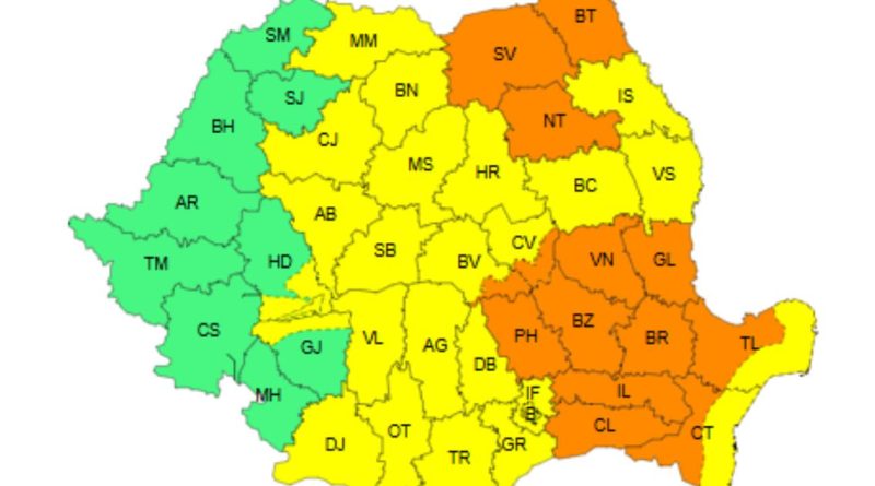 Meteorologii au emis, joi, mai multe avertizări cod galben şi cod portocaliu care anunţă instabilitate atmosferică în cea mai mare