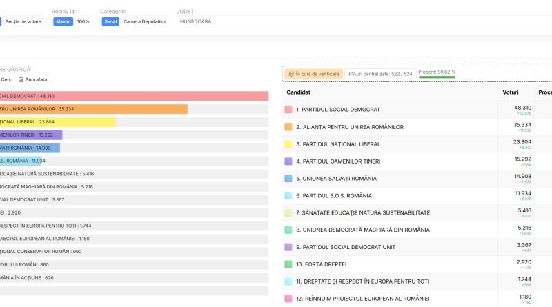 Read MorePotrivit numărătorii parțiale care acoperă 99,8% din voturile hunedorenilor, la alegerile parlamentare de ieri, în județul Hunedoara, rezultatele sunt cele