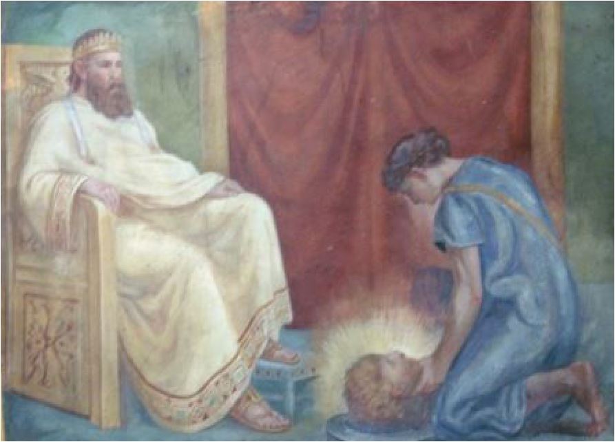 Irod Antipa al IV-lea, fiul lui Irod cel Mare, a intrat în conflict cu Sfântul Ioan Botezătorul, pentru că a fost mustrat că trăia în nelegiuire cu Irodiada, soția fratelui sau, Filip. Menționăm că Ioan îl mustră pe Irod înaintea tuturor: „Nu ți se cade să țîi pe femeia fratelui tău” (Marcu 6, 18). Și din acest motiv, nesuferind mustrările prorocului Ioan, Irod a poruncit să-l prindă și să-l închidă pe acesta în temniță. Când a sosit ziua să de naștere, Irod a poruncit să se facă ospăț mare. La acest ospăț, Salomeea, fiica Irodiadei, a dansat pentru rege și invitați. Încântat de dansul ei, Irod i-a promis sub jurământ că ii va da orice va cere, până la jumătate din împărăția să. La îndemnul Irodiadei, Salomeea a cerut capul Sfântului Ioan Botezătorul. Irod s-a tulburat auzind această, dar legat de jurământ, a dat porunca să fie tăiat capul lui Ioan și adus pe tipsie.