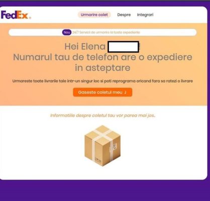 Tentativă de fraudă online care foloseşte identitatea vizuală a FedEx