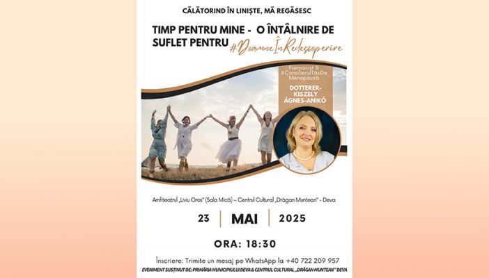 Primăria Municipiului Deva și Centrul Cultural „Drăgan Muntean” susțin demersurile farmacistei și consilierului în menopauză și andropauză, Dotterer-Kiszely Ágnes-Anikó, de a organiza un eveniment dedicat femeilor care traversează etape importante de transformare fizică și emoțională.