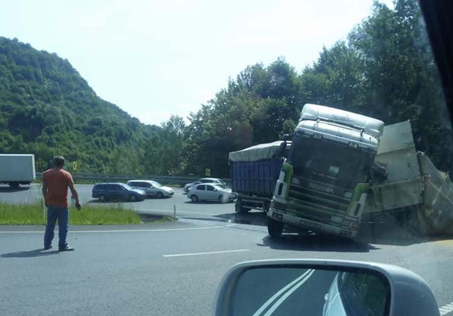 Traficul pe DN 66, în zona Peșterii Bolii, se desfășoară cu dificultate. Încărcătura unui camion s-a răsturnat pe șosea, îngreunând astfel traficul rutier în zonă.
