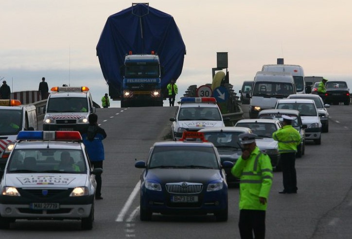 Transportul este format dintr-un camion cu masa de 110 tone, urmând să fie însoțit pe traseul precizat de echipaje ale poliției rutiere.