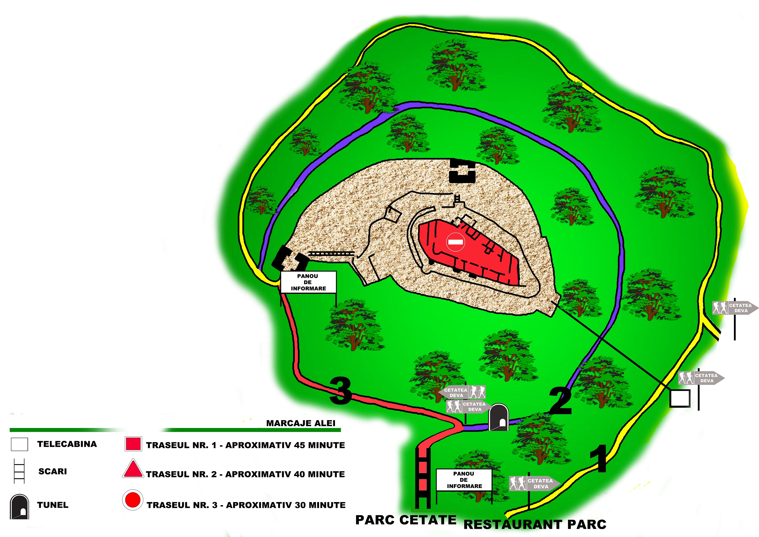 Cele trei trasee turistice din Cetatea Deva sunt: