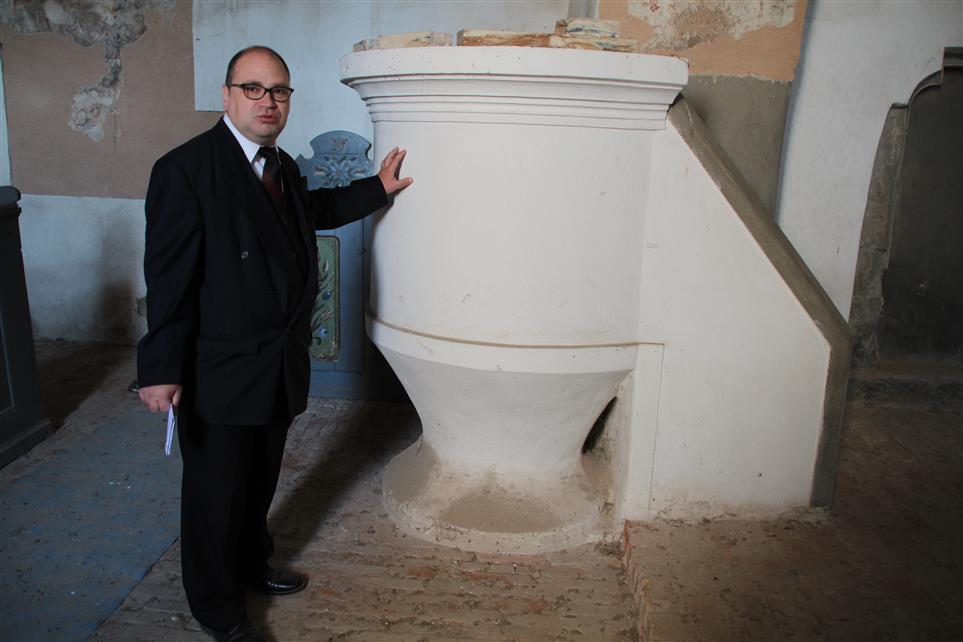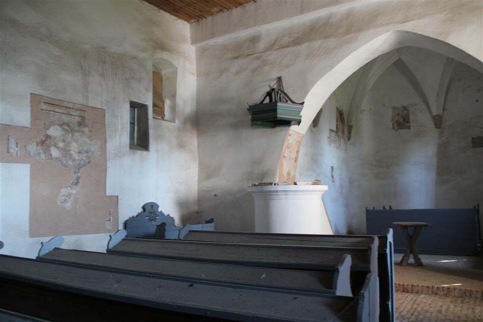 Laşi privirea să cutreiere peste pereţii prăfuiţi, priveşti conturul ferestrelor cu sticlă spartă, cauţi printre bâncile şubrede, peste pardoseala rămasă după foc. Când îţi îndrepţi privirea, potirul magic este chiar în faţa ta – e, de fapt, amvonul de lângă intrarea în altar, piesă care are forma unui potir.