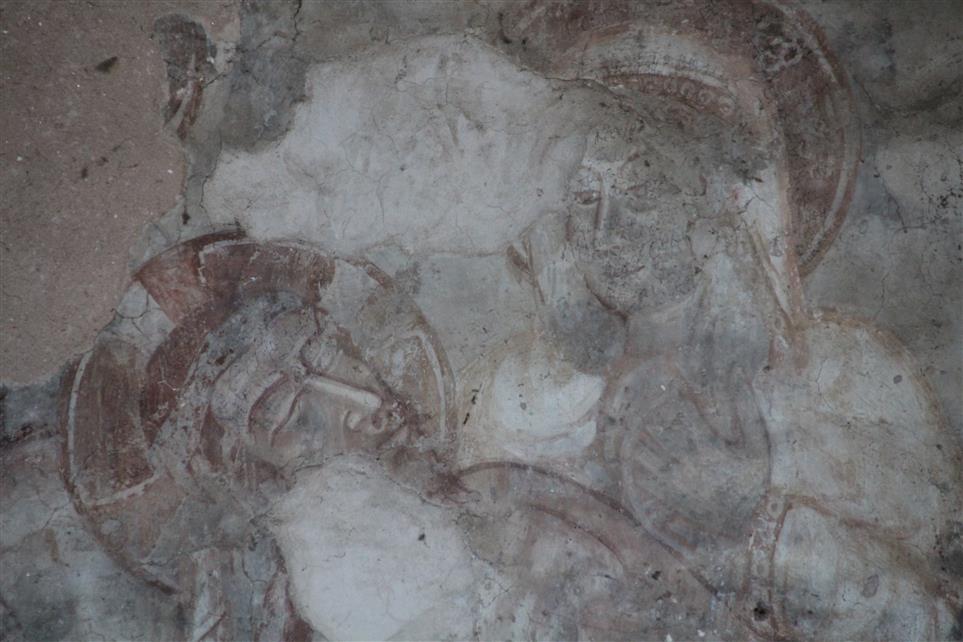 Este cunoscută ca „Pieta”. Este foarte interesant că pictura nu este dreaptă, ci urmăreşte denivelarea peretelui de piatră”, se entuziasmează preotul paroh. Priveşte în jur la minunăţia de clădire, zâmbeşte şi aruncă o ghicitoare: „Avem aici lângă noi un potir magic! Unde e?”
