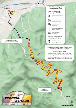 Datorită faptului că etapa hunedoreană trebuie să se desfășoare în deplină siguranță pentru toate părțile implicate: sportivi, spectatori, organizatori, oficiali, reprezentanți media; Inspectoratul de Poliție Județean Hunedoara – prin Serviciul Rutier, va asigura și impune restricții de circulație rutieră în zilele de 24 și 25 August, după următorul program: