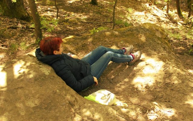 Mai toţi cei care ajung aici sunt atraşi de poveştile din jurul stâncilor care stârnesc curiozitatea. „Am venit până aici la o plimbare, mai ales că este o zi foarte frumoasă. Am auzit de acest loc, se vehiculează tot felul de legende despre această piatră: se spune că ar fi un scaun al unor uriaşi sau chiar patul unor uriaşi. Eu pentru legende am venit, dacă nu le-aş fi citit nu aş fi aflat despre acest loc interesant”, spune Alina Benţa aşezată comod în cuibarul de piatră.