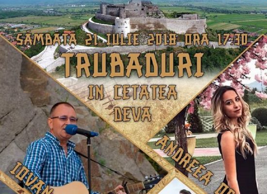 Fortăreața medievală care datează din secolul al XIII-lea va găzdui sâmbătă, 21 iulie 2018, între orele 17:30 – 19:30, în zona Bastionului Sud-Estic (sosire Telelcabină) un concert de muzică folk, sub genericul ,,Trubaduri în Cetatea Deva”.